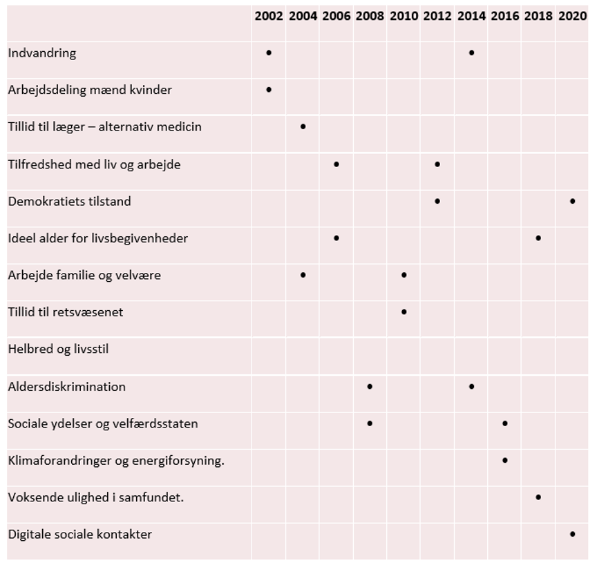 Roterende moduler i European Social Survey, 2002-2020